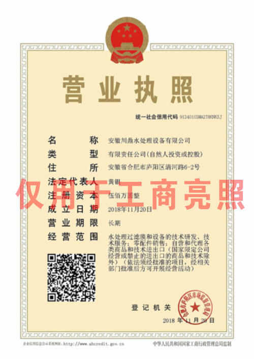 安徽川鼎水處理設備有限公司是一家集研發、生產和銷售為一體,且致力于污水環保處理的高科技新材料企業。經過多年的技術攻關,研發出中空纖維超濾膜新 型材料、獨創紡絲工藝、MBR膜組件。應用于高濃度、高難度廢水處理,符合國家排放標準及中水回用要求。公司獲得了第八屆國際發明展覽會發明項目金獎、第二屆全國印刷行業綠色印刷 科技創新特別獎、第二十四屆上海市優秀選拔賽發明產品推廣實施金獎。被列入“國家綠色印刷推廣工程重點項目”。